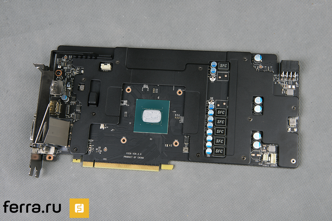 Founders Edition, если ее опять сравнивать с GeForce GTX 1060 GAMING X 6G, — это вообще заморыш какой-то. Оборотная сторона кастома оснащена металлическим бекплейтом. Все, как у старших собратьев.