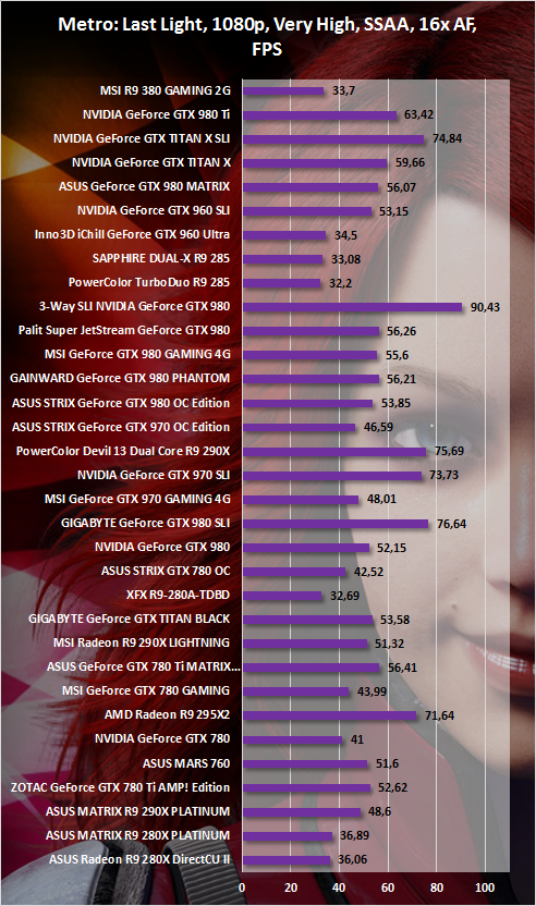 Новые драйверы и увеличенная частота GPU дали свои плоды. При заданных нами настройках качества графики уровень FPS в разрешении Full HD можно признать условно играбельным. Минимальный показатель кадров равен 25. В WQHD-разрешении FPS проседает заметно сильнее.