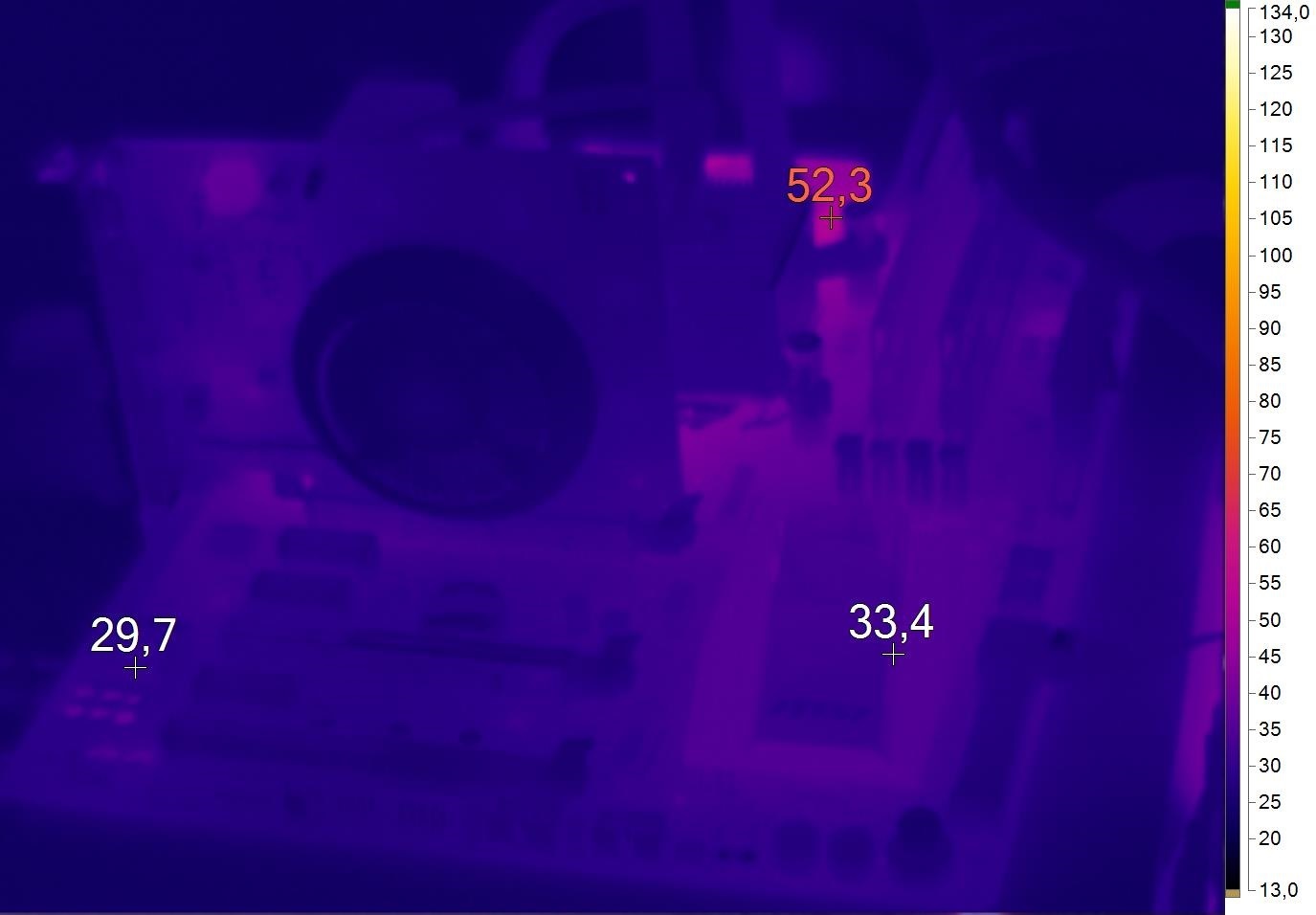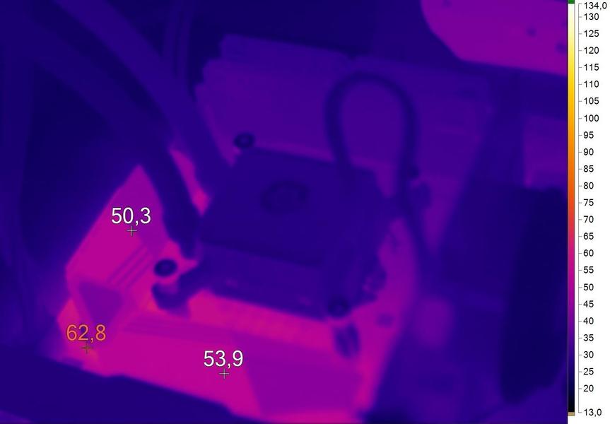 MSI Z170A GAMING M7 — холодная материнская плата. Даже при серьезном разгоне центрального процессора подсистема питания устройства не прогрелась выше 75 градусов Цельсия. Используемое эффективное охлаждение, а также качественная элементная база, на которую опирается MSI Z170A GAMING M7, дают о себе знать.