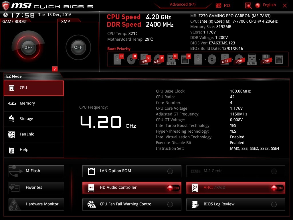 Автоматический разгон MSI Z270 GAMING PRO CARBON