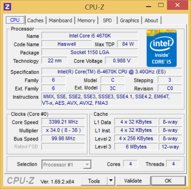 | Intel Core i5-4670K | Intel Core i5-4690K | Intel Core i7-4770K | Intel Core i7-4790K | |