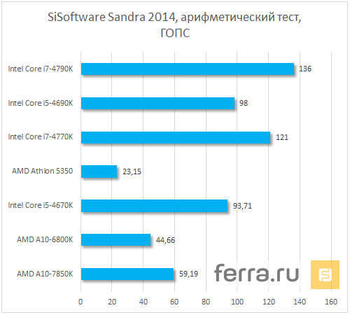 SiSoftware Sandra 2014, на мой взгляд, несколько чудит. Если в арифметическом тесте результаты оказались предсказуемыми, то с криптографией, шифрованием и многоядерной эффективностью творится самая настоящая катавасия и нерелевантность.