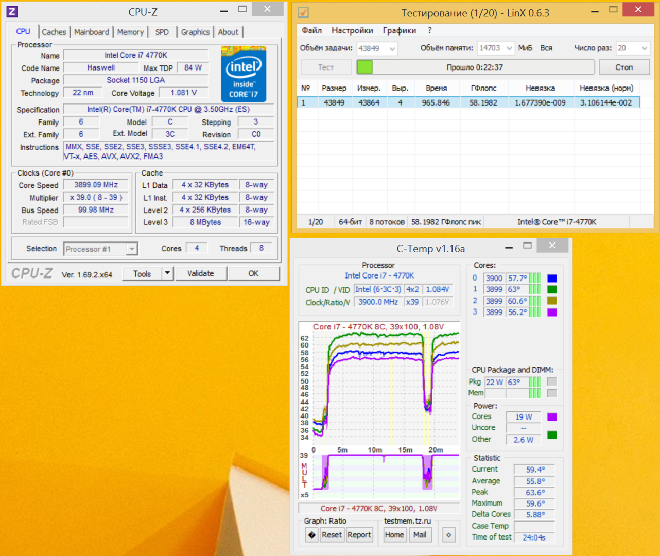 Стабильные 4700 МГц при VCore 1,4 В — это максимум протестированного мной Core i5-4690K.