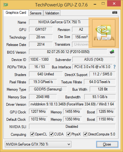 Результаты тестирования NVIDIA GeForce GTX 750 Ti