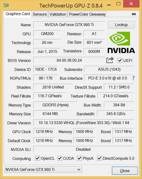 Мониторинг показателей ASUS STRIX GeForce GTX 980 Ti