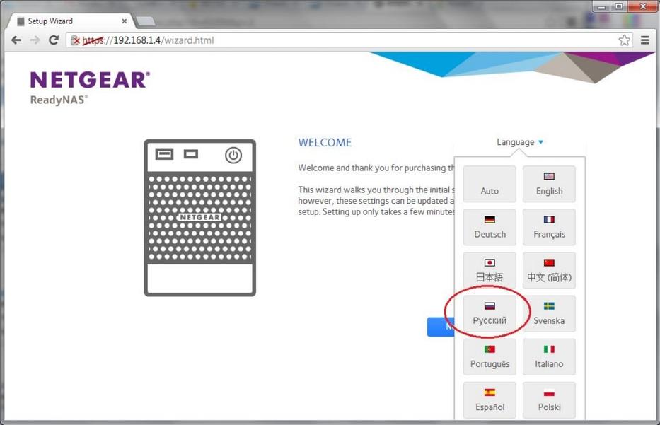 Но пора упомянуть и про «ложку дёгтя в бочке мёда». Слегка удивило отсутствие торрент-клиента: почему NETGEAR посчитал не царским делом интегрировать его в джентльменский набор встроенного софта, остаётся неясным. Ничего зазорного в этом вроде бы и нет. Даже несмотря на то, что факт отсутствия такой полезной функции легко исправляется магазином приложений, подчёркивать таким образом ориентированность устройства на малый бизнес странно. Другим странным моментом изначально стало отсутствие русского языка. Однако уже после того, как устройство было оттестировано, стала доступна прошивка 6.0.8, в которой все оказалось на своих местах. Нужный вам язык можно выбрать как в мастере первоначальной настройки, так и в любом другом разделе; меню Profile, где это можно сделать, постоянно доступно в верхнем правом углу экрана.