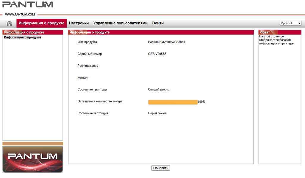 Кстати, принтер поднимает в сети свой WEB-сервер, доступный по IP-адресу. Там можно отслеживать состояние принтера, картриджа, и управлять настройками — в том числе, настроить доступ к серверам FTP или SMB. Настройки немного кривоваты (и русификация местами страдает), но если всё сделать правильно, то сканировать на принтере можно без участия компьютера или смартфона — результат будет сразу отправлен на сервер в виде PDF-файла.