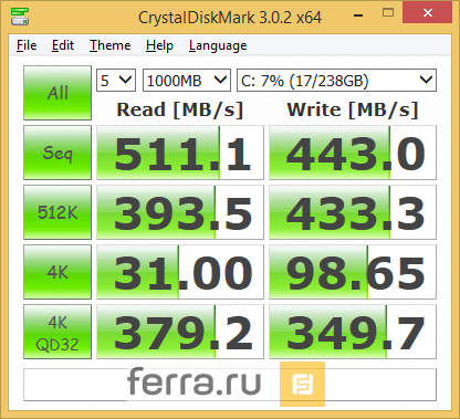 | Пиковая скорость линейной записи | 335 Мбайт/с | 520 Мбайт/с | 420 Мбайт/с | 510 Мбайт/с |