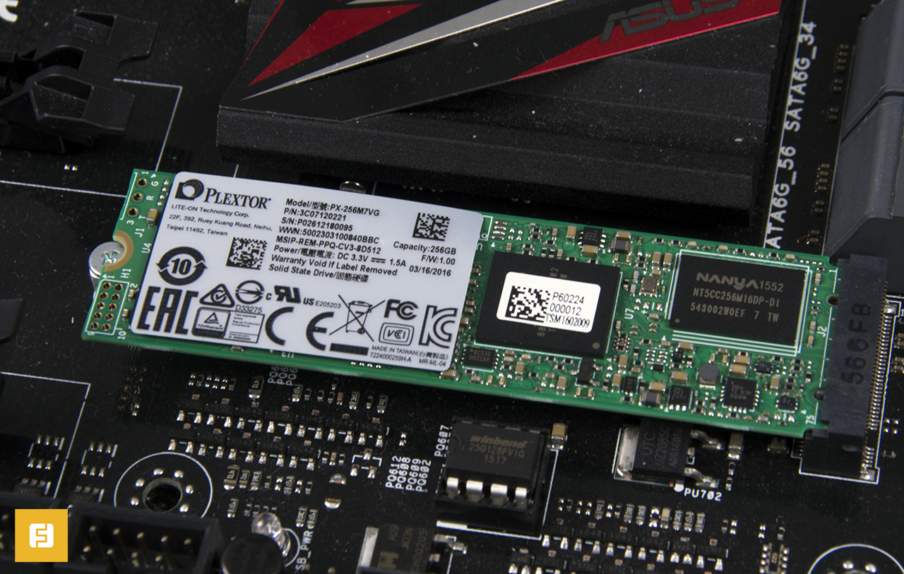 Plextor PX-256M7VG, как и полагается накопителю меньшего форм-фактора, получил всего две микросхемы при сохранении того же объема. Все элементы SSD распаяны на одной стороне печатной платы форм-фактора 2280.