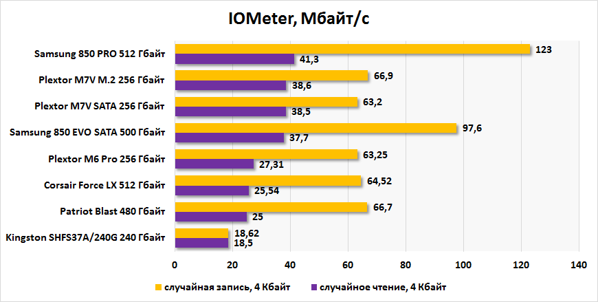 Результаты тестирования Plextor M7V в IOMeter