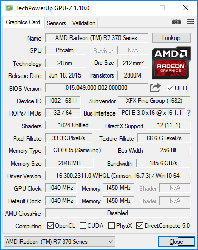 | XFX BLACK DD Radeon R7 370 | 1040/1450 МГц | 1150/1600 МГц |