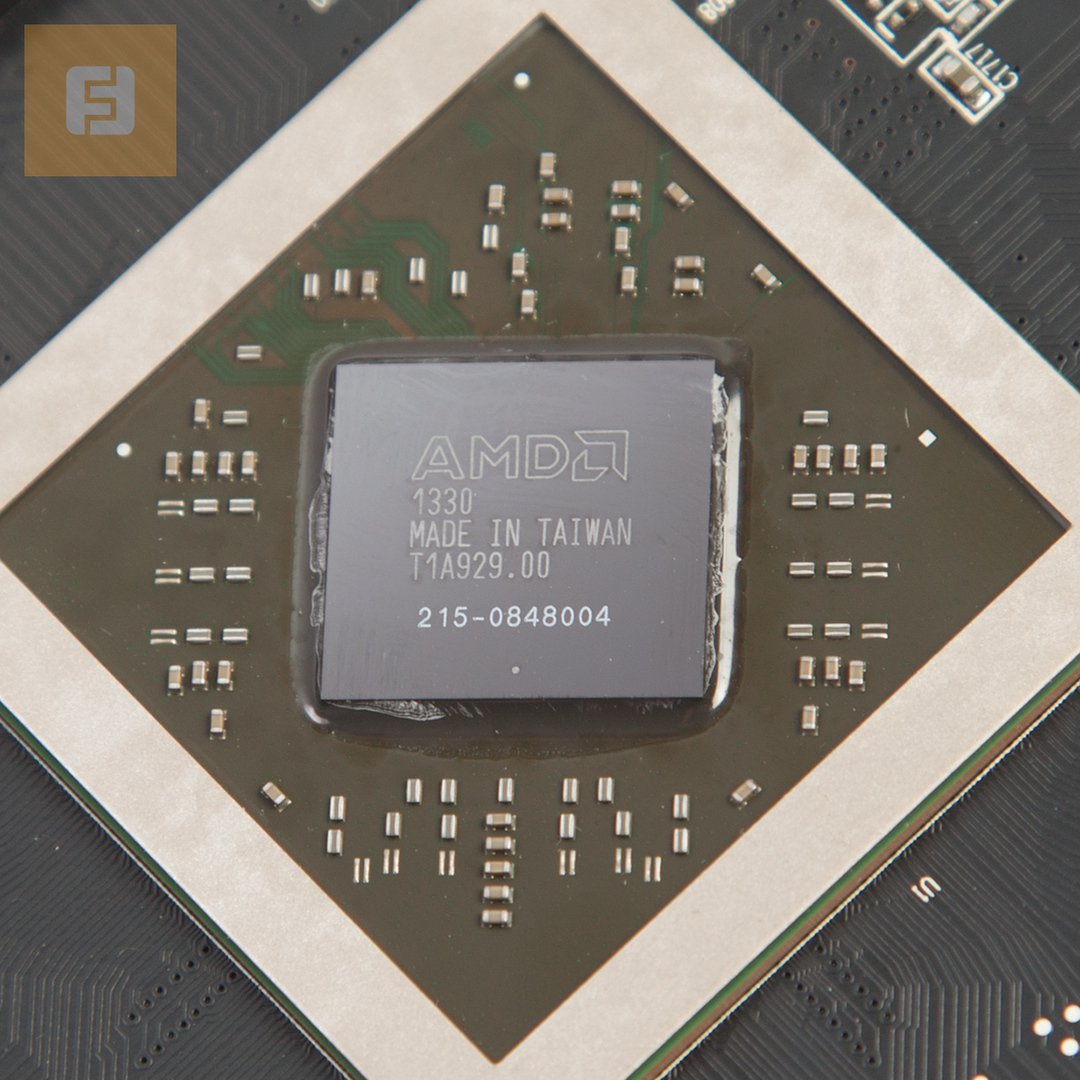 Под радиатором расположен GPU, его окружают 12 чипов памяти. Цепь питания снабжена собственными радиаторами. SAPPHIRE использует чипы памяти SK hynix.
