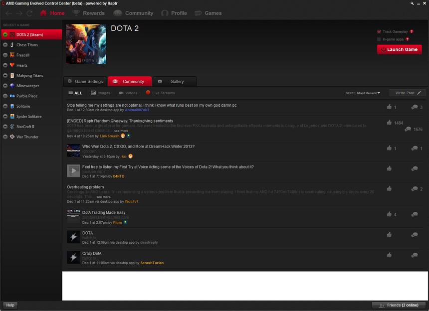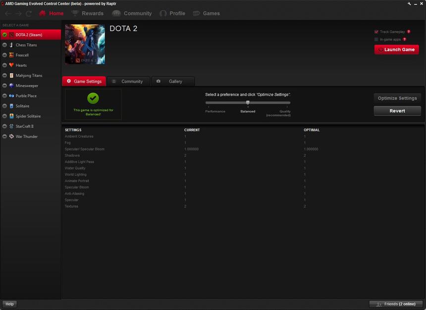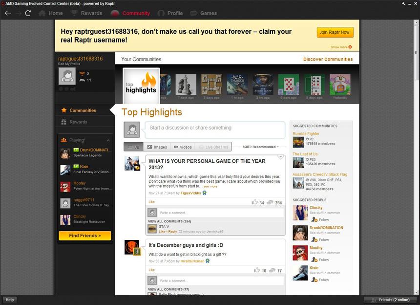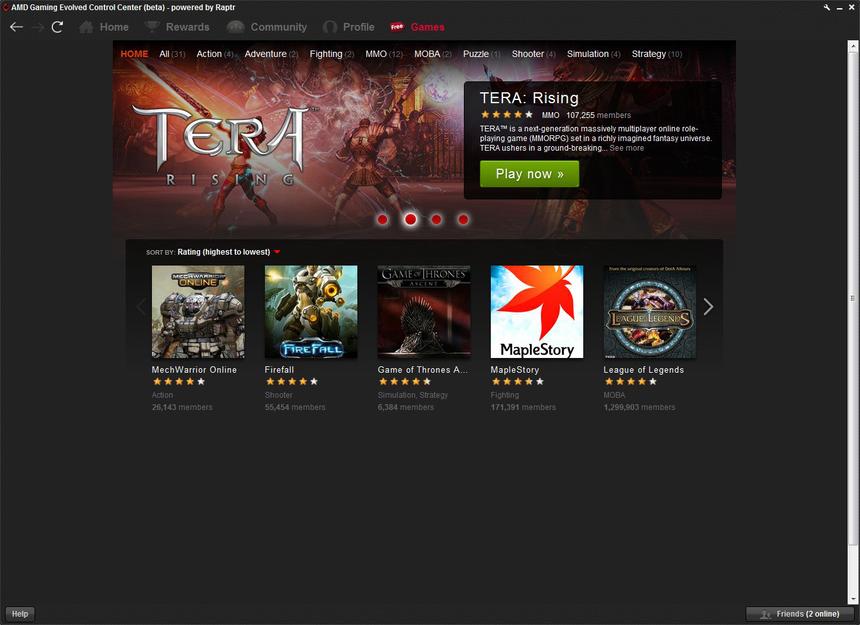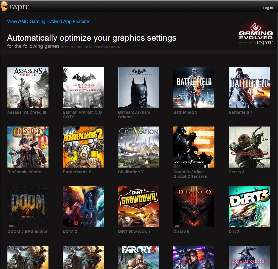 Очень удобно, когда в игре всё под рукой и в одном месте. В AMD это понимают, поэтому компания решила объединить игроков под одной «крышей». Одновременно с выходом новой линейки видеокарт было запущено приложение Gaming Evolved App, работающее на основе игрового сервиса Raptr, запущенного в 2007 году.