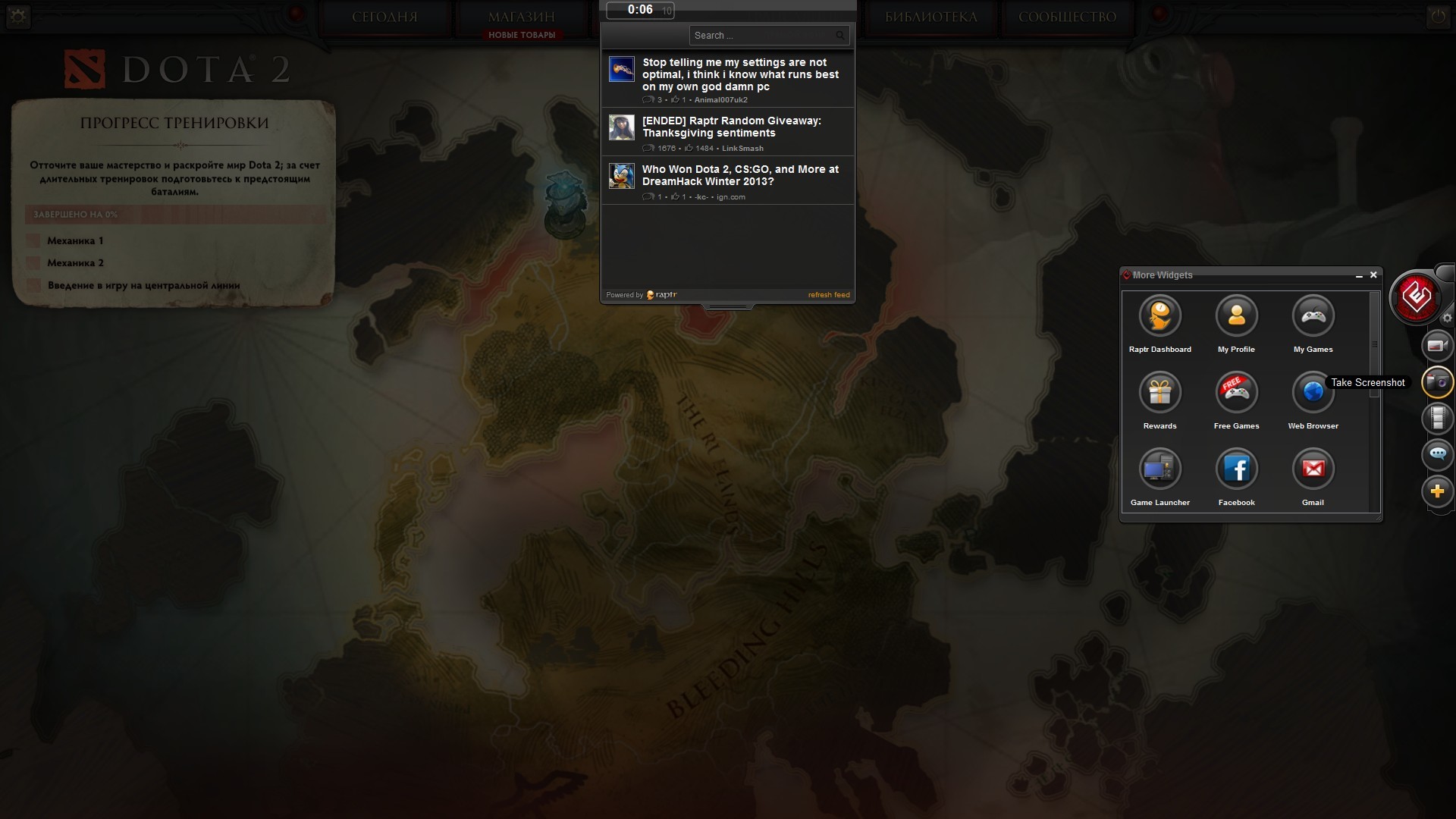 При нажатии клавиш Ctrl+Tab во время игры открывается интерфейс Raptr. Тут можно оперативно начать видеозапись или снять скриншот, поделиться впечатлениями от игры в сообществе, а также посетить один из доступных Интернет-ресурсов. Можно, например, посмотреть видео на You Tube. Доступно всё и сразу.