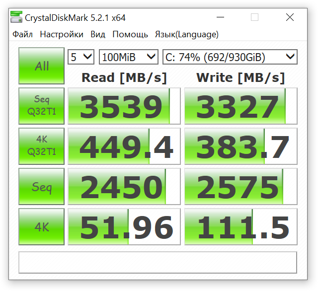 Ещё один стандарт в замерах производительности SSD. Многими считается недостаточно хардкорным и суровым тестированием накопителей, но без него в замерах никак: