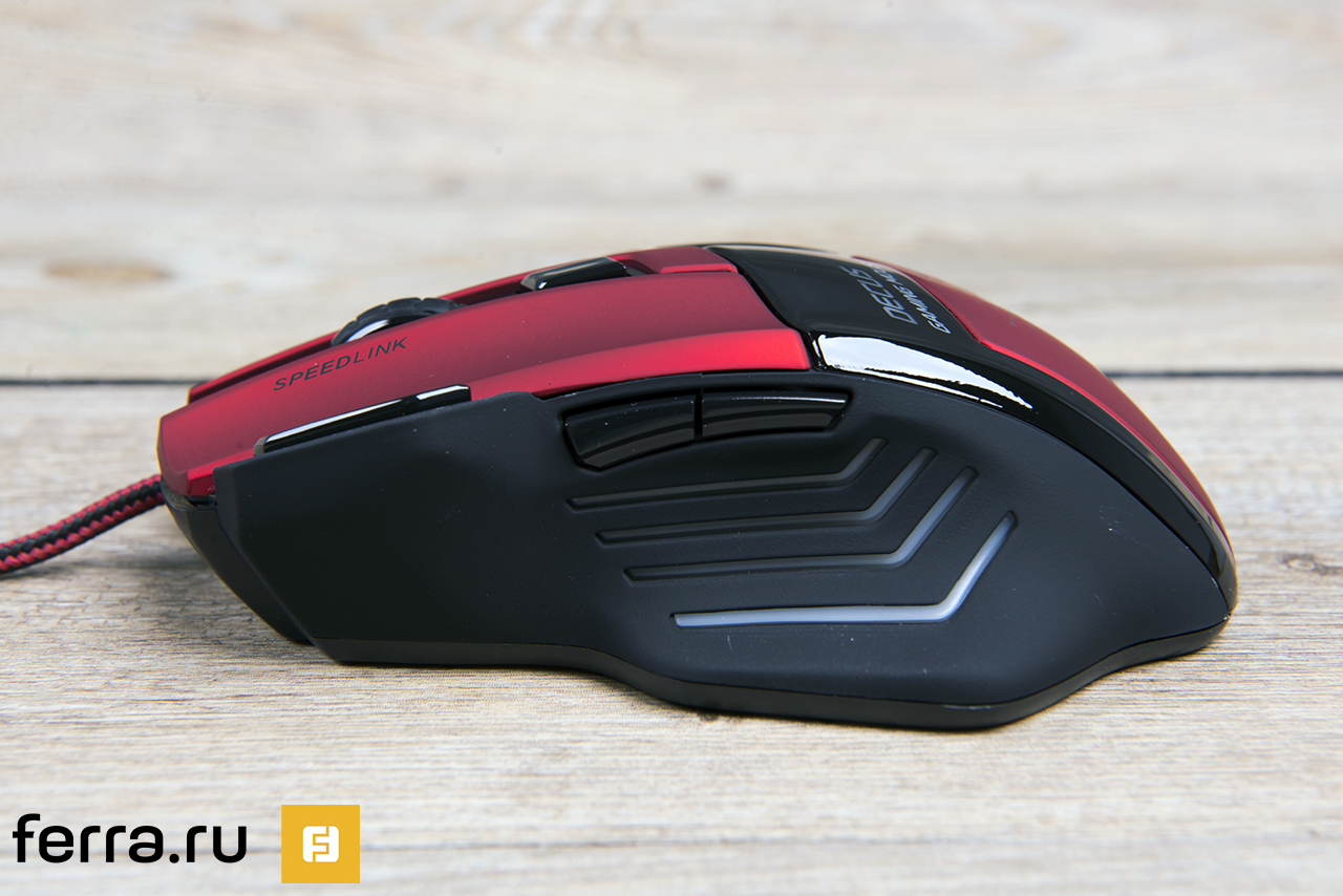 Неотъемлемый атрибут любой современной игровой мыши — это точный датчик. У SPEEDLINK, как мы уже отметили, есть варианты на любой вкус, цвет и толщину кошелька. Однако во всех случаях производитель снабдил свои устройства высокоточными сенсорами с возможностью изменения разрешающей способности на лету. К нам в редакцию приехали мышки рубиново-красного цвета. Вкупе с подсветкой «грызуны» выглядят крайне агрессивно, но весьма привлекательно. Отметим, что в продаже есть и более лаконичные модификации — полностью черные.