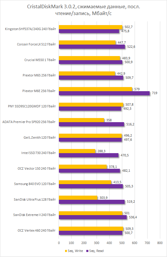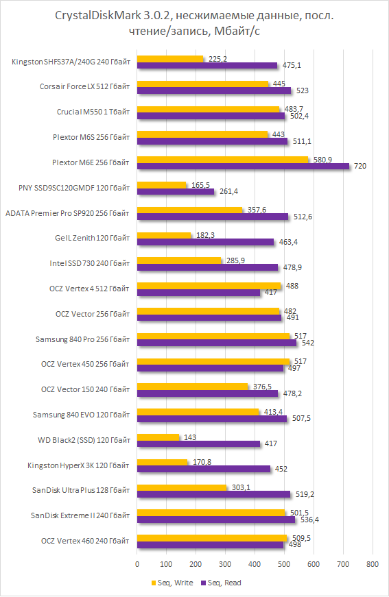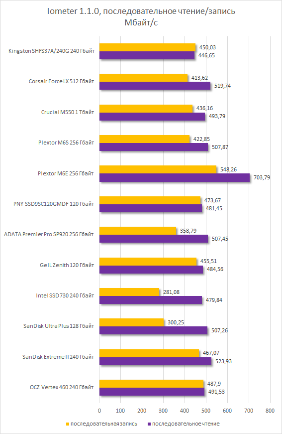 | Пиковая скорость линейного чтения | 500 Мбайт/с | 550 Мбайт/с | 540 Мбайт/с |