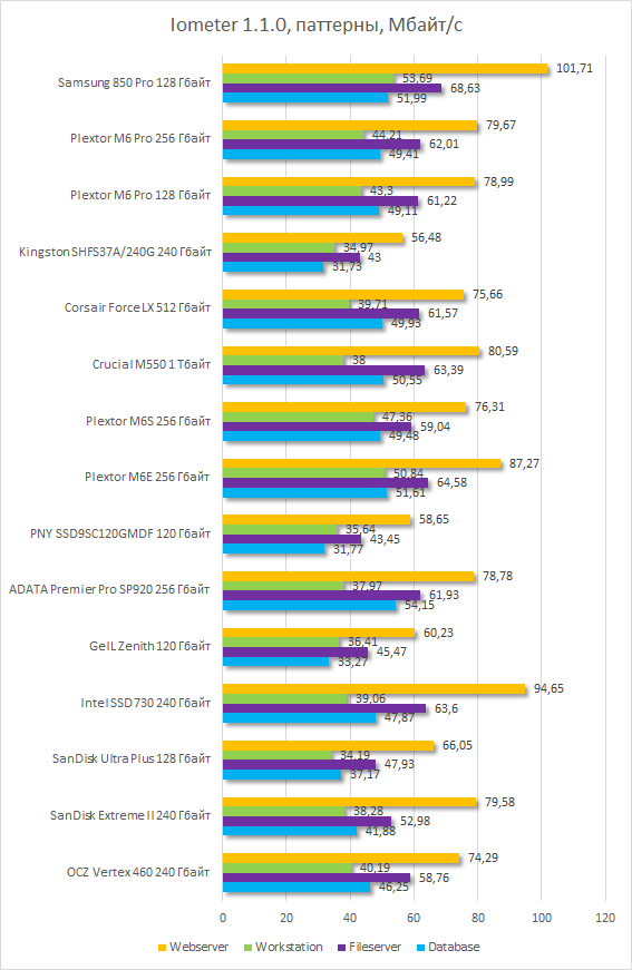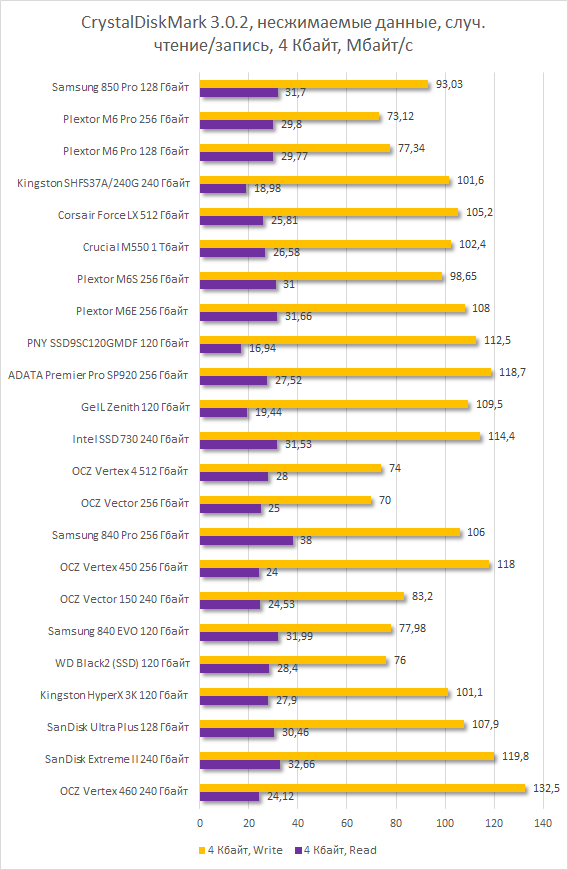 | Samsung 850 PRO 128 Гбайт (MZ-7KE128BW) | Plextor M6 PRO 128 Гбайт (PX-128M6Pro) | SanDisk Extreme PRO 240 Гбайт (SDSSDXPS-240G) | |