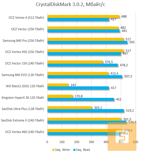 | SanDisk Ultra Plus 128 Гбайт | Kingston SSDNow KC300 120 Гбайт | SanDisk Extreme II 240 Гбайт | Samsung 840 Pro 256 Гбайт | |