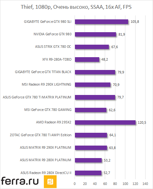 Анализ игровой производительности GIGABYTE GeForce GTX 980 SLI в Thief