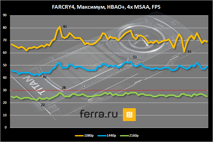 Far Cry 4 в Ultra HD лично я признал бы условно играбельным. Убрать сглаживание — и появятся заветные 30 FPS. В остальных режимах наблюдаются очень аппетитные цифры.
