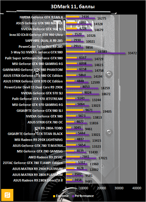 | NVIDIA GeForce GTX TITAN X (1229/1945 МГц) | 7977/12159 баллов |