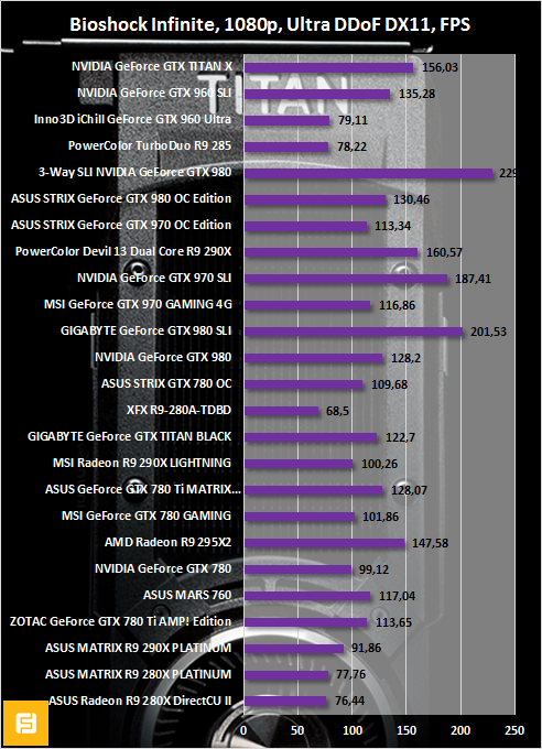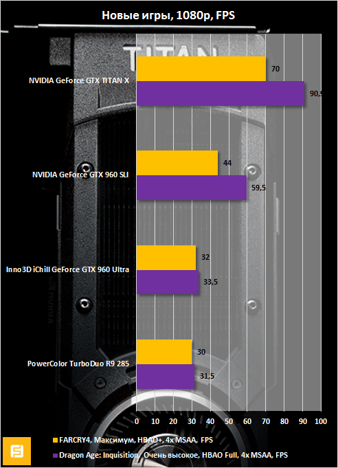 В Остальных играх наблюдается схожая ситуация, а именно GeForce GTX TITAN X опережает одночиповые GeForce GTX 980 и Radeon R9 290X на 30-40% и уступает массивам видеокарт, а также двухчиповому «монстру» в лице Radeon R9 295X2.