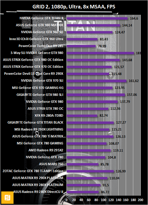 Из всех игр GRID 2 демонстрирует, пожалуй, самую высокую лояльность к GeForce GTX TITAN X. Даже в 4K-разрешении минимальный FPS не опускался ниже показателя в 57 кадров в секунду.