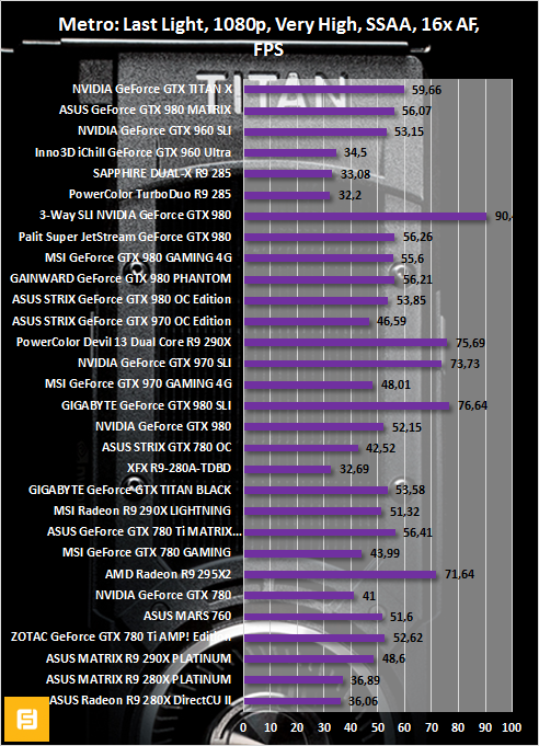 Самые странные результаты были продемонстрированы в Metro: LL. Так, GeForce GTX TITAN X оказалась всего на несколько FPS быстрее GeForce GTX 980. В 4K — не играбельно.
