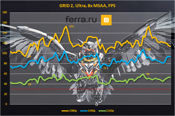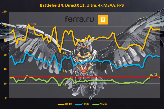 Данный анализ взят из прошлого материала, посвященного GeForce GTX 970. Тем не менее, он наглядно демонстрирует, на что может рассчитывать геймер при покупке этой видеокарты. Приведены результаты замера FPS в трех разрешениях: Full HD (1080p, 1920x1080), WQHD (1440p, 2560x1440) и Ultra HD (2160p, 3840x2160p).