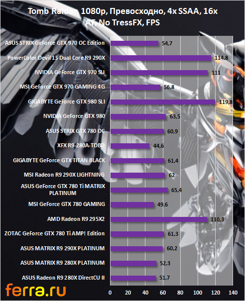 Здесь GeForce GTX 970 в целом демонстрирует очень хорошие результаты.