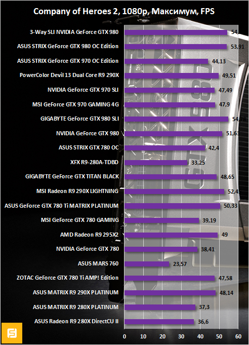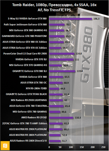 Игра нетребовательна, поэтому в таких результатах нет ничего удивительного. Очень близки к эффекту процессорозависимости и две GeForce GTX 980.