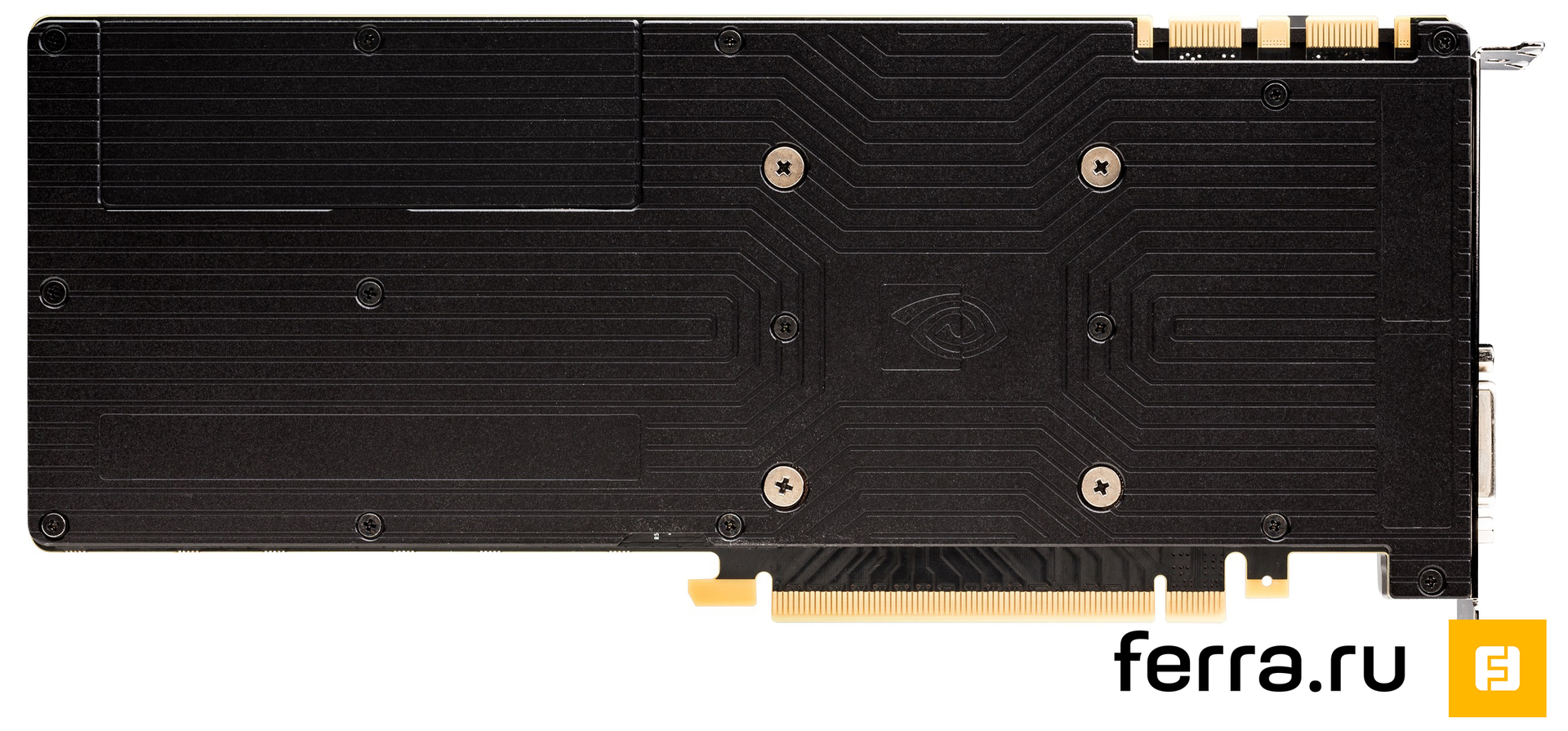 I/O-панель, на мой взгляд, располагает идеальным сочетанием портов, а также их количеством. Здесь есть один DVI, один HDMI и сразу три DisplayPort. В качестве воздуховода используется такая же решетка, как у GeForce GTX TITAN Z. Отмечу, что реализован HDMI именно версии 2.0. Следовательно, видеокарта отлично подружится с современными 4К-телевизорами.