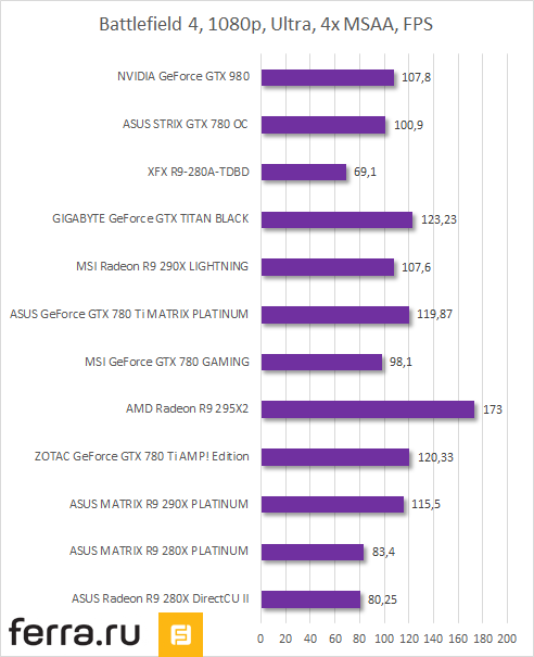 Как известно, студия DICE активно сотрудничает с AMD. Игра Battlefield даже поддерживает низкоуровневый API Mantle. Однако движок у шутера вполне дружелюбный ко всем видеокартам. Здесь Radeon R9 290X оказалась быстрее GeForce GTX 980.