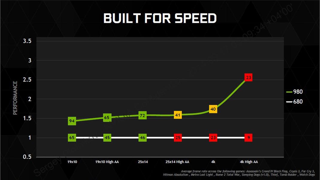 Разница в производительности между GeForce GTX 980 и GeForce GTX 680 видна невооруженным взглядом. Быстродействие GM204 (особенно в сверхтяжелых режимах) может достигать двух-, а то и трехкратного превосходства.