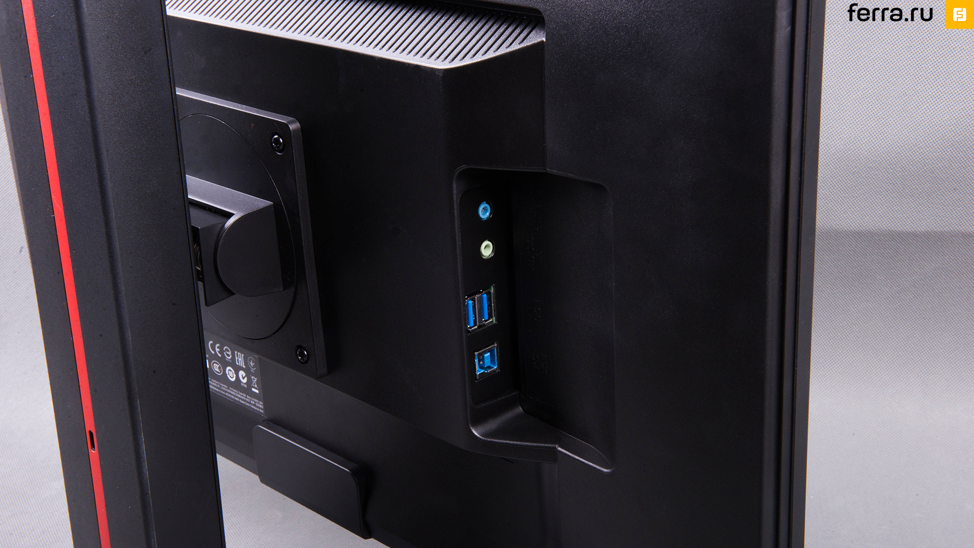 Порты у ViewSonic VG2401mh-2 разделены на две группы и расположены в разных местах. Одна группа — видеоинтерфейсы. Среди них DVI-D, два HDMI и DisplayPort. Они расположены практически за ножкой монитора и традиционно смотрят вниз. Не так далеко находятся два аудиопорта (3,5 мм джек) и три USB 3.0, хотя вставить флешку одной рукой, да еще на ощупь, будет очень непросто. На задней панели за решётками для вентиляции также спрятаны два динамика мощностью по 3 Вт, однако их звучание оставляет желать лучшего. То есть, если уж совсем ничего под рукой нет, тогда можно немного потерпеть то, как старается воспроизвести звук ViewSonic VG2401mh-2. Правда, само собой, никто потрясающего звука от мониторов не ждёт.