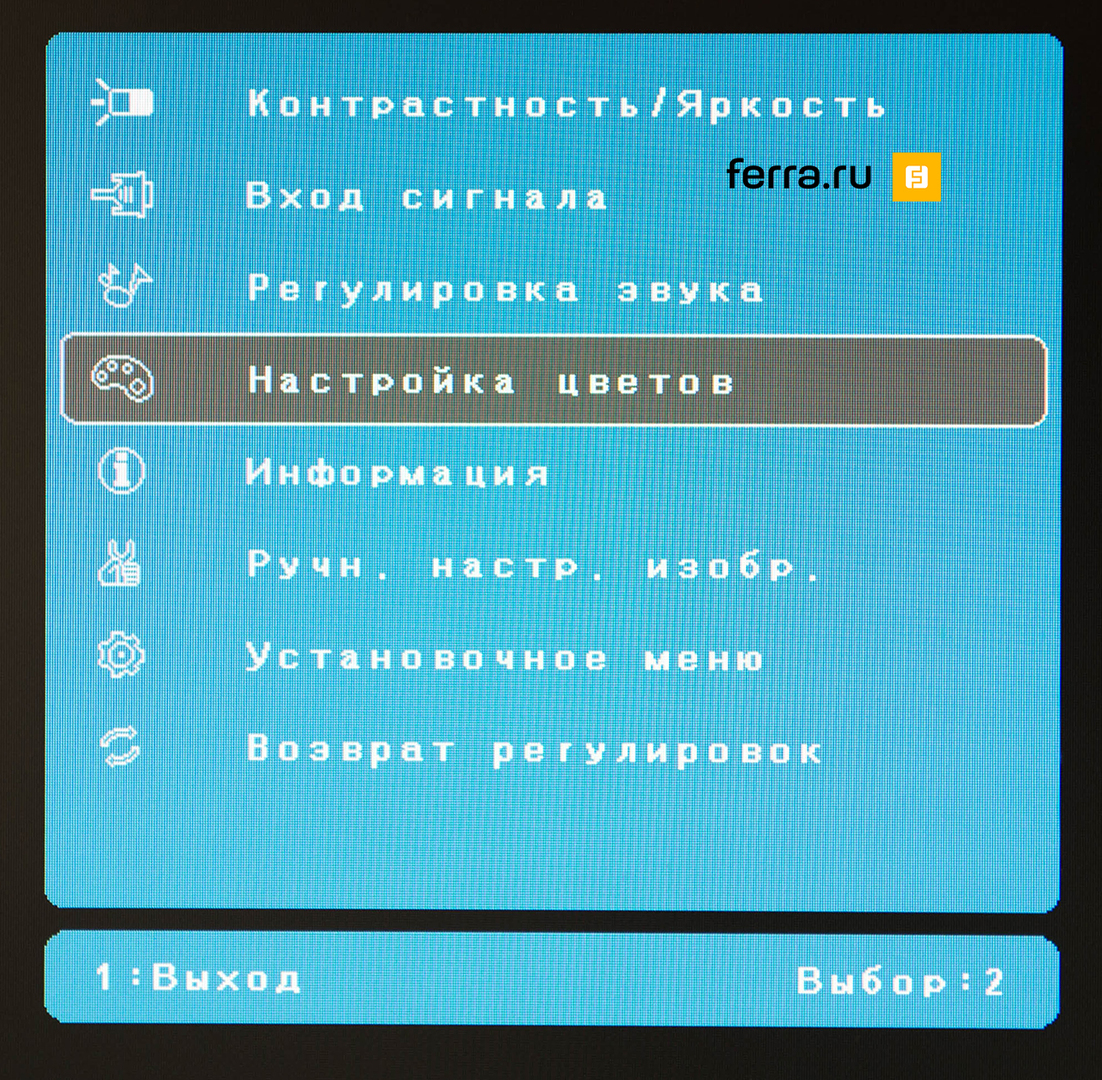 Меню ViewSonic VG2401mh-2 простое, понятное, без лишних прикрас. К тому же, оно почти не менялось за последние несколько лет. Но всё-таки есть некоторые претензии. К примеру, если самая левая клавиша вызывает основное меню, то ни одна из остальных не помогает непосредственно настроить звук или громкость. Вместо этого, нажимая стрелочку вниз, вы включаете и выключаете функцию низкой задержки поступающего в монитор сигнала (Input Lag), стрелочкой вверх активируете специальный «игровой» режим. Наконец, последняя с конца кнопка запускает долгий и нудный процесс поиска видеосигнала.