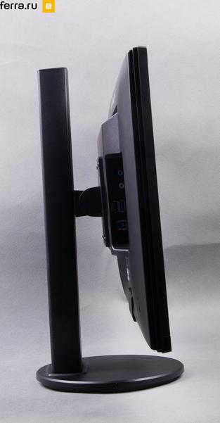 С эргономикой у этой модели тоже всё в порядке. Монитор легко поворачивается по горизонтали, поднимается/опускается на 120 мм и легко разворачивается в портретный режим. Корпус не сказать, что большой для 24-дюймовой матрицы, но и тонким и стильным его тоже не назовёшь.