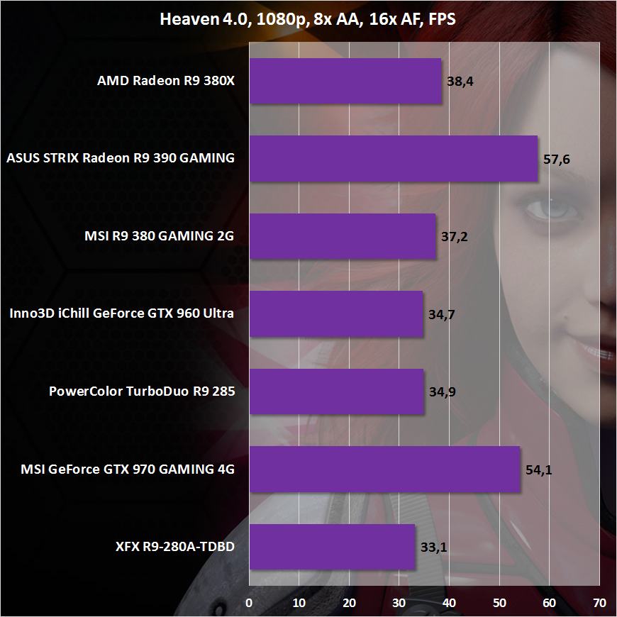 В целом не могу согласиться с «красными», что Radeon R9 380X предназначена для гейминга в WQHD. В разрешении Full HD этой видеокарте гораздо комфортнее, а геймер сможет побаловать себя максимальным качеством графики в любом современном проекте. Все же для покорения 1440p понадобится артиллерия потяжелее. Например, Radeon R9 390.