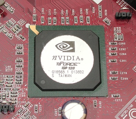 В основе чипсета лежали два процессора. Именно процессора, но не моста. Чип IGP 128 (Integrated Graphics Processor) отвечал за работу с памятью и шиной AGP 4х и имел встроенное интегрированное графическое ядро. Число в названии означало максимальную скорость при обращении к оперативной памяти. Микросхема MCP (Media and Communications Processor) отвечала за работу с периферией. Главной особенностью IGP, сделавшей nForce легендарным, являлось наличие двух параллельных (фактически независимых) 64-разрядных контроллеров памяти DDR/SDR и управляющего ими интеллектуального блока кэширования DASP (Dynamic Adaptive Speculative Pre-processor). Эта «фишка» реально позволяла ускорить работу оперативной памяти. У конкурентов на тот момент подобных решений в наличии не было.
