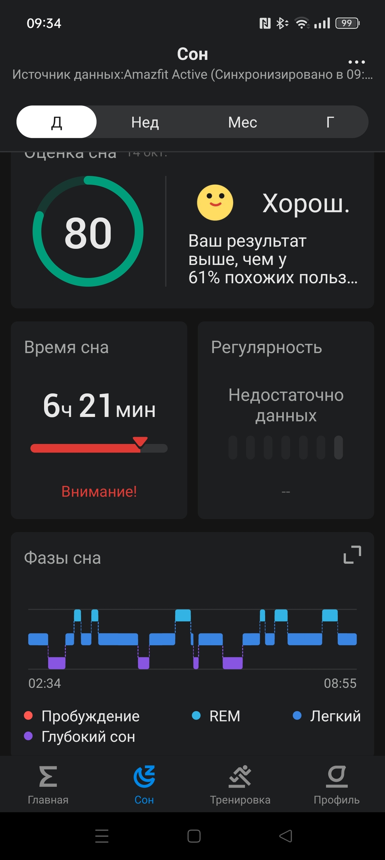Вообще, само приложение Zepp радует подробной статистикой всего подряд. Даже информация о сне здесь намного детальнее, чем у некоторых конкурентов. Не факт, что вам всё это понадобится, но вдруг. Лишним не будет.