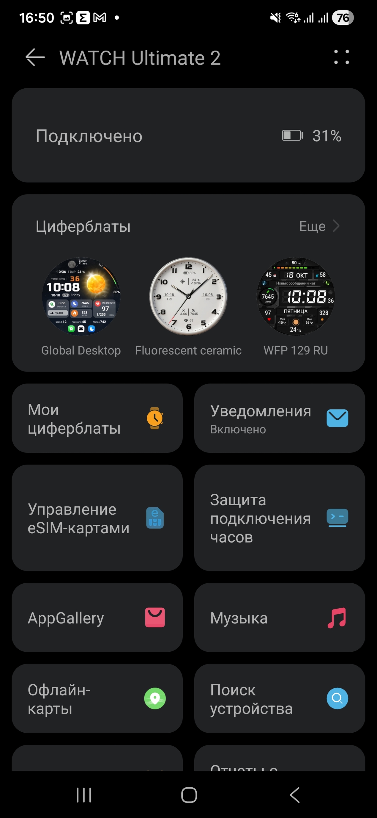 HUAWEI WATCH Ultimate 2, основные виджеты