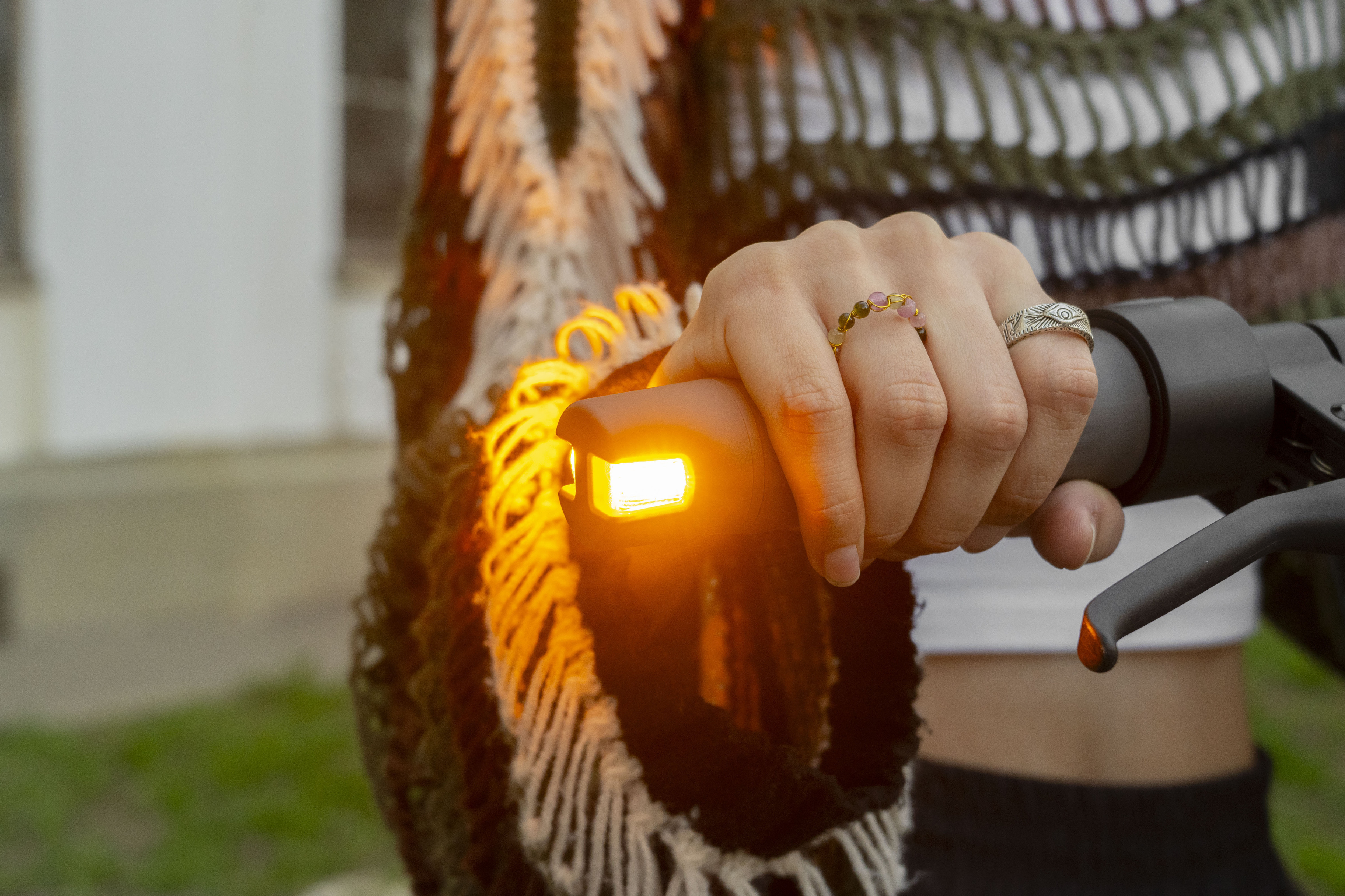 Система освещения в этом самокате мало чем отличается от того, что мы видели в прошлом году. Яркие поворотники все так же слепят глаза (это ОЧЕНЬ хорошо!), а вот мощности передней фары мне не хватило. Мой велосипедный фонарь Cateye AMPP 500 запросто перебивает на вечерних фотографиях фонарь самоката (отчетливо видно на заглавном снимке, я им освещаю самокат), поэтому за него минус — придется раскошеливаться на свет помощнее. А вот к задней фаре и неоновой подсветке снизу претензий нет, со своими задачами они справляются на пять с плюсом.