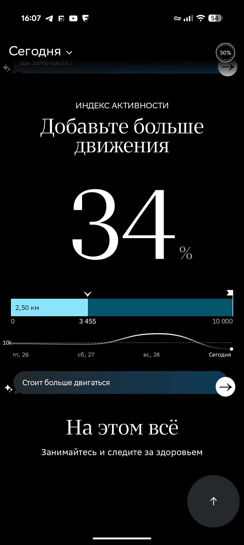 - Физическая активность. А вот тут уже всё понятно — кольцо считает шаги, расход калорий и общий уровень активности в течение дня.