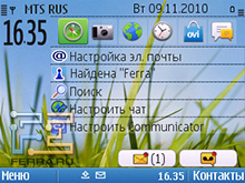 Пройдёмся по программной части подробнее. Рабочий стол практически не претерпел изменений по сравнению с тем, что можно видеть в других смартфонах Eseries. По-прежнему есть несколько вариантов представления рабочего стола, а для одного из них («Активный») теперь возможно настроить два режима: для рабочего времени и для «мирной» жизни. Переключение между режимами осуществляется за пару секунд, да и в меню этот пункт спрятан совсем неглубоко.