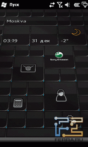 Sony Ericsson Xperia X2 использует доведенную до ума идею сменных панелей для рабочего стола. В базовом наборе доступно девять различных панелей плюс возможность автоматической смены в указанные часы. Можно, например, сделать так, чтобы в рабочее время перед вами была панель с сервисами Google, а в нерабочее – просто красивая анимация. Например, Pixel City. Есть также удобная панель с доступом к контактам, календарю, почте и калькулятору, которая использует акселерометр для анимации. Потрясли корпус – посмотрели на шевелящиеся блоки. Никакой функциональной нагрузки в этом нет, но выглядит красиво и интересно.