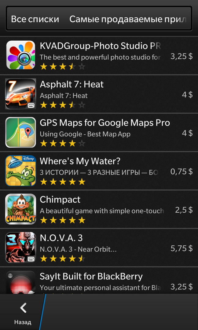 Естественно, в Blackberry OS 10 есть магазин приложений. Тут уже есть как бесплатные, так и платные программы. Оплатить можно с помощью карточки, процедура удобная и абсолютно безболезненная.
