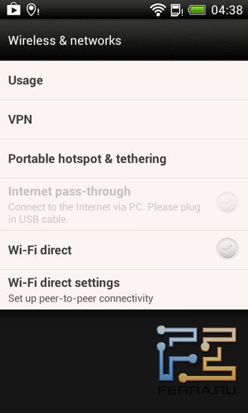 Расположенный на борту модуль Wi-Fi может выступать в роли точки доступа, раздавая интернет, полученный через 3G. Также аппарат поддерживает Bluetooth 4.0 c EDR и A2DP. Что касается позиционирования, то поддерживается только GPS.