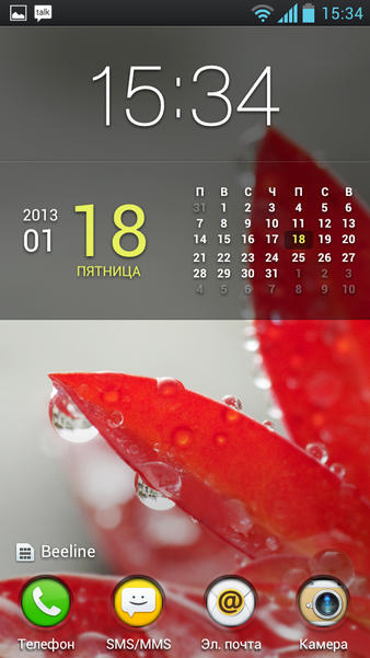 Рабочие столы заполнены многочисленными предустановленными виджетами. Причём они умеют самостоятельно двигаться, освобождая место для нового соседа — в «родной» оболочке Андроида такая фича появилась только к версии 4.1. Строка поиска Google теперь находится на каждой страничке, а панель уведомлений доступна даже из экрана блокировки.