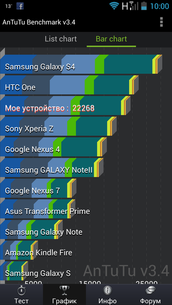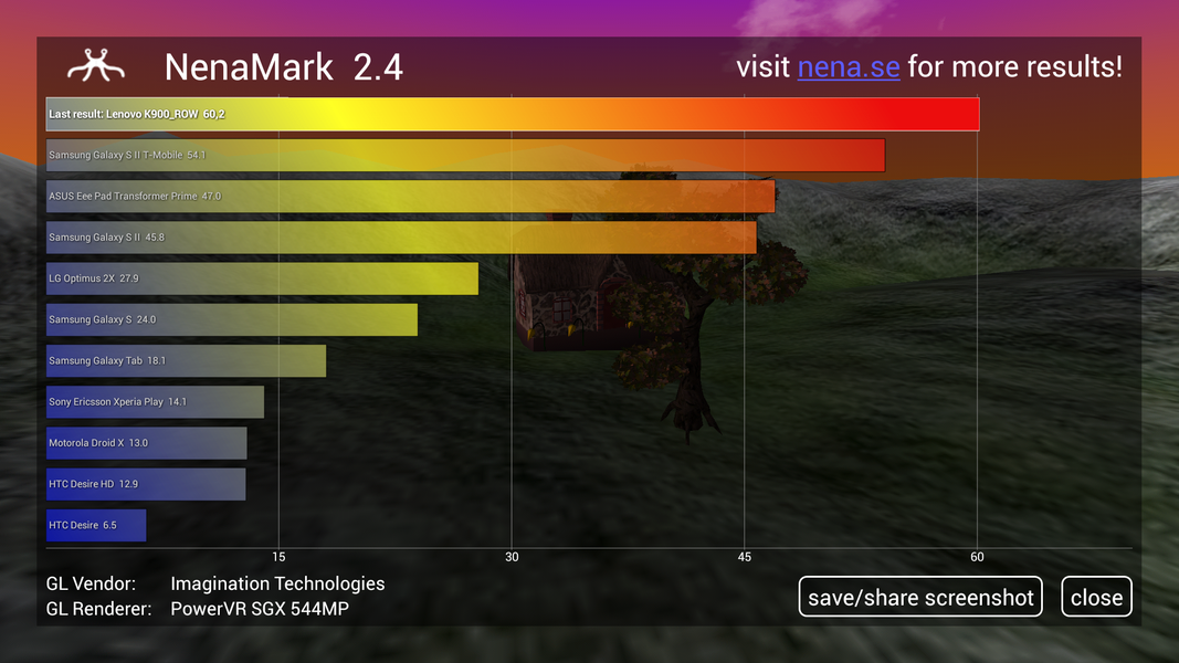 Пожалуй, самый интересный раздел обзора — аппаратная часть. Напомним, что работает новинка на базе процессора от Intel, остальные параметры привычны для флагманов современной линейки Android-смартфонов. Скорость работы интерфейса на высоте и эффекты переходов это подтверждают. Запуск, работа приложений без нареканий: поставить перед K900 невыполнимых задач за время тестирования нам не удалось. Скриншоты бенчмарков — лишнее тому подтверждение, аппарат почти всегда занимает лидирующие позиции и находится на уровне современных ТОР’ов.